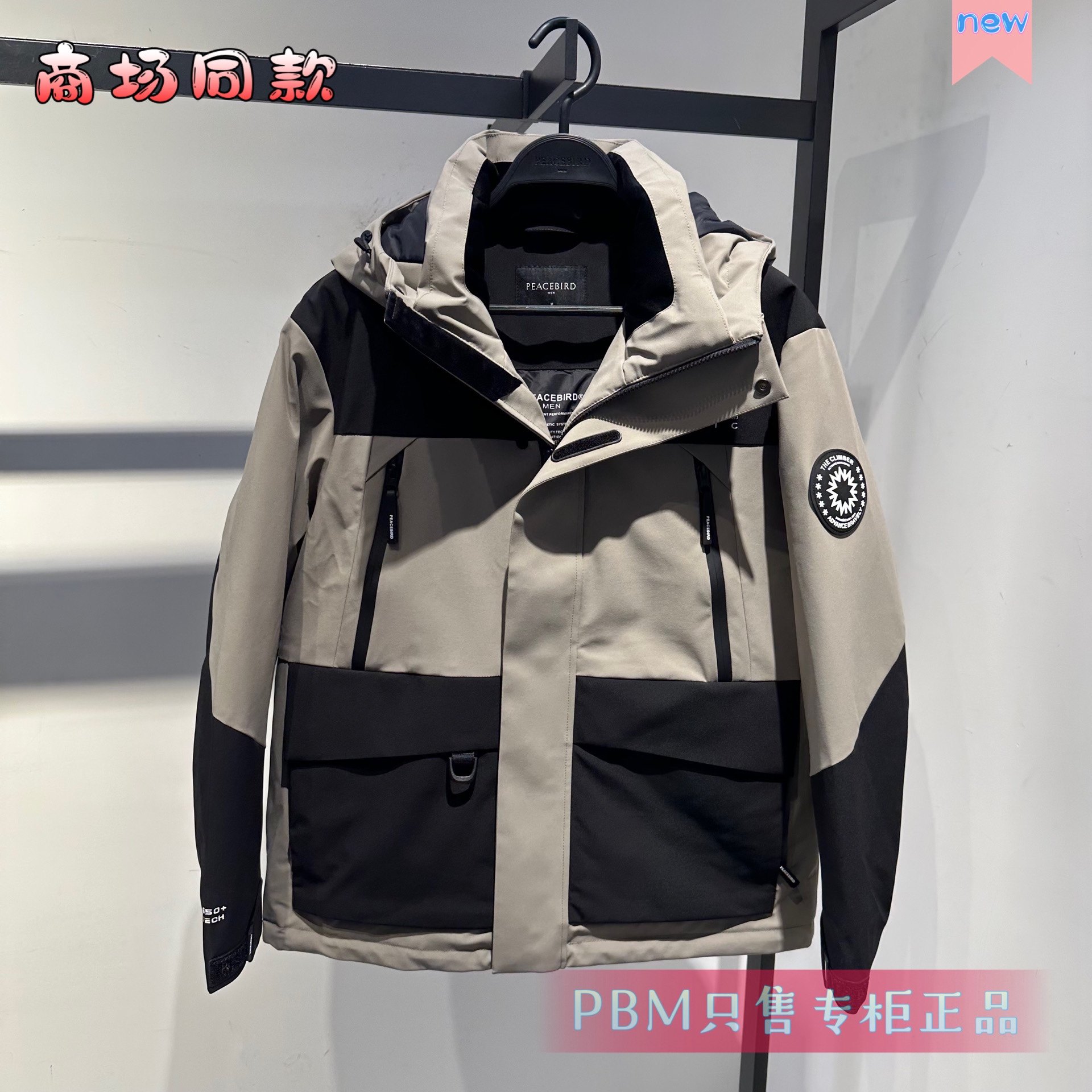 B2ACC4509 太平鸟男装冬季新款连帽拼接宽松厚款羽绒服保暖外套潮