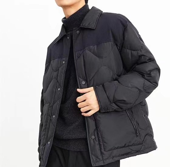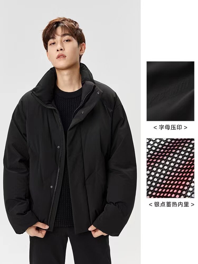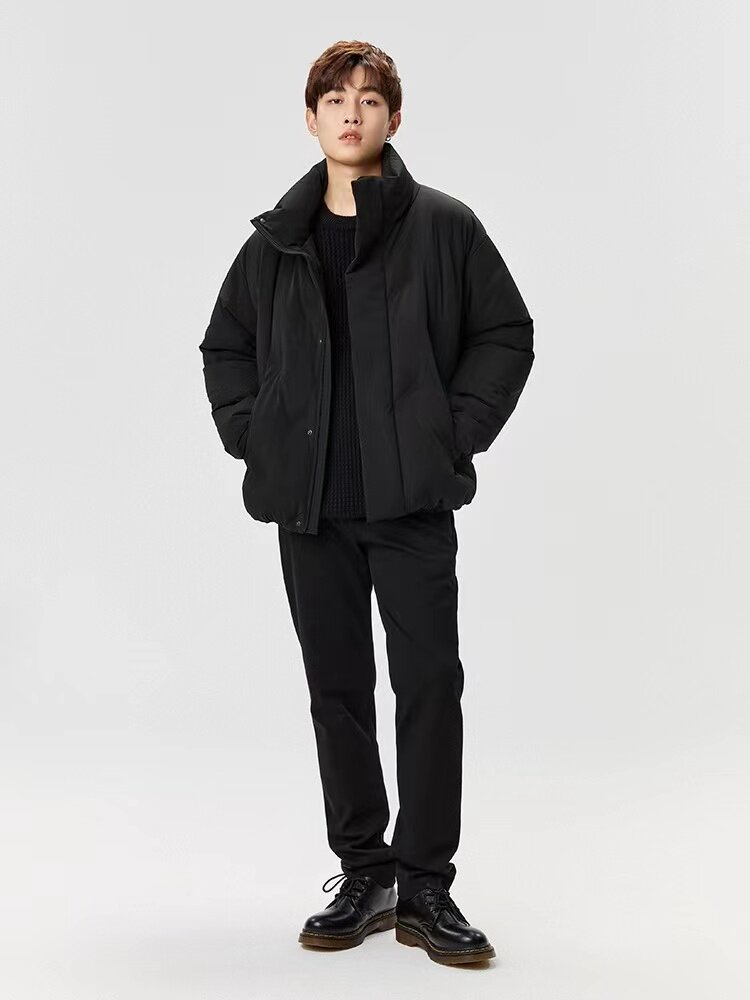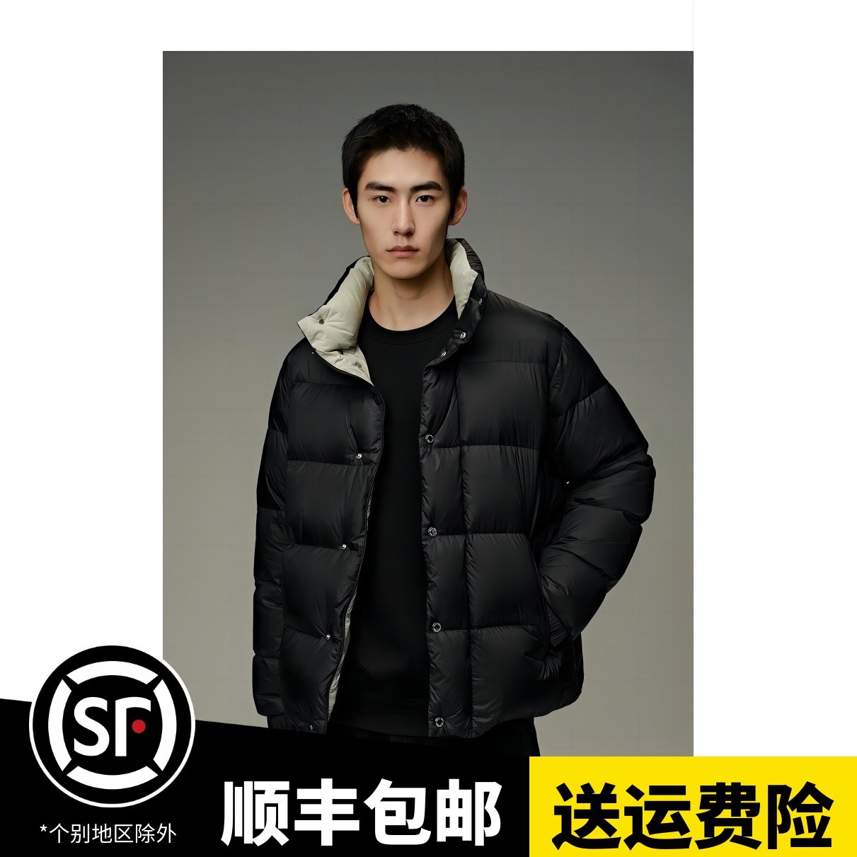B1ACC4X07太平鸟男装2022冬新款黑色简约拉链立领防风休闲羽绒服
