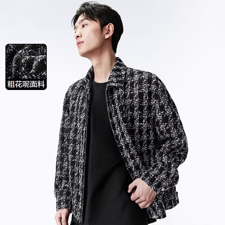 太平鸟情侣小香风夹克2024春新款翻领外套拉链肌理感休闲宽松夹克