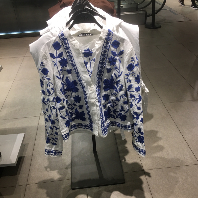 ZAR女装新款春夏装刺绣白色衬衫短上衣4786056查罗04786056712