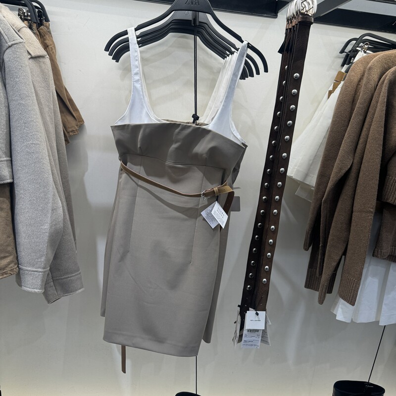 ZAR女装新款配腰带拼接连衣裙吊带女裙短裙3152308查罗3152308704