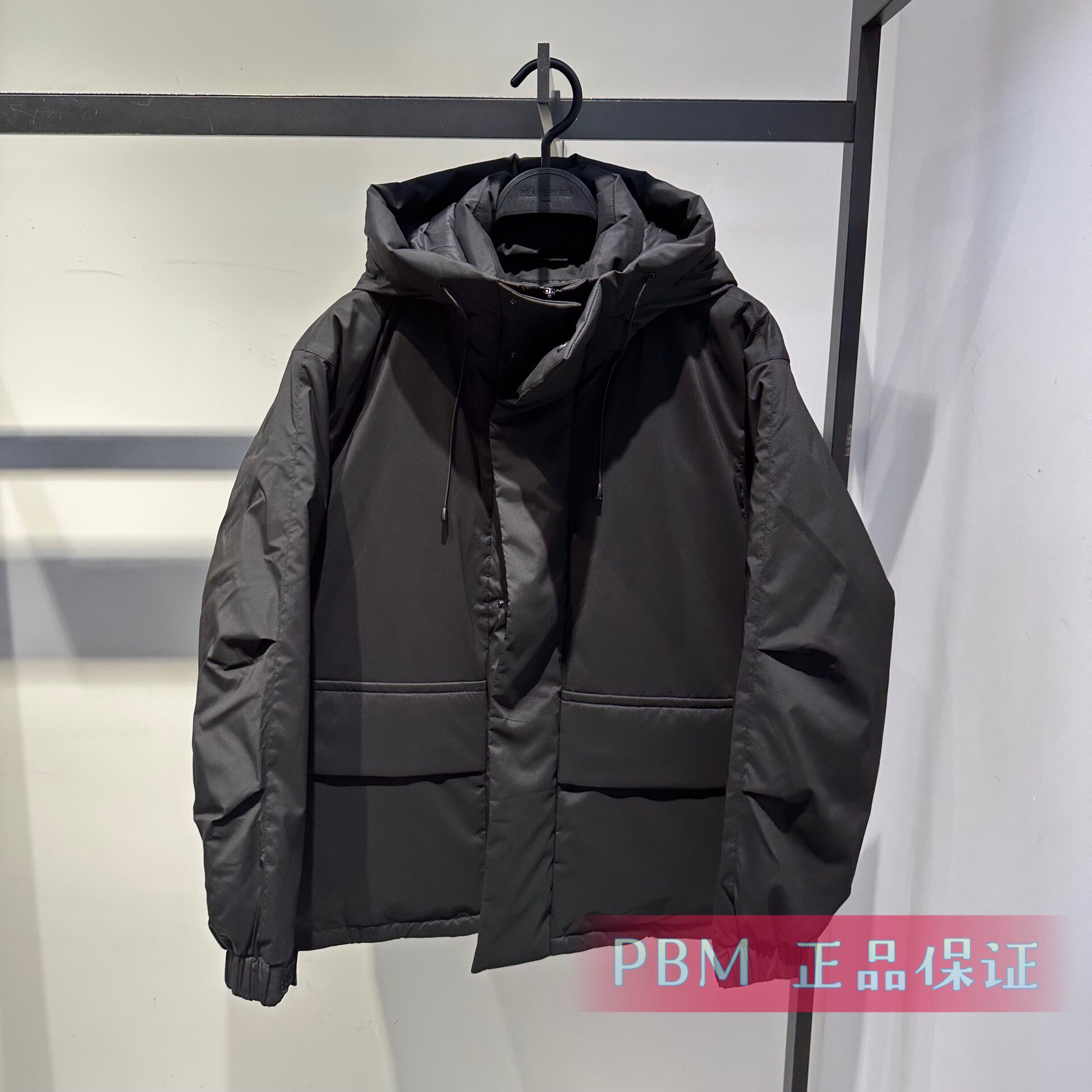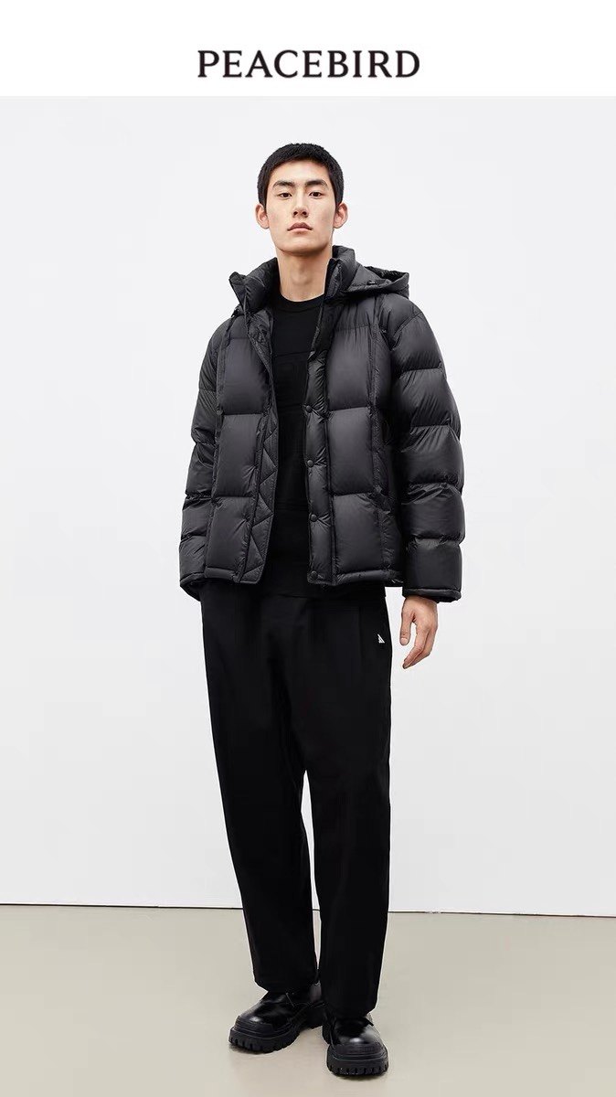 B1ACC4626太平鸟男装 2022冬青年外穿连帽黑色防风鸭绒保暖羽绒服