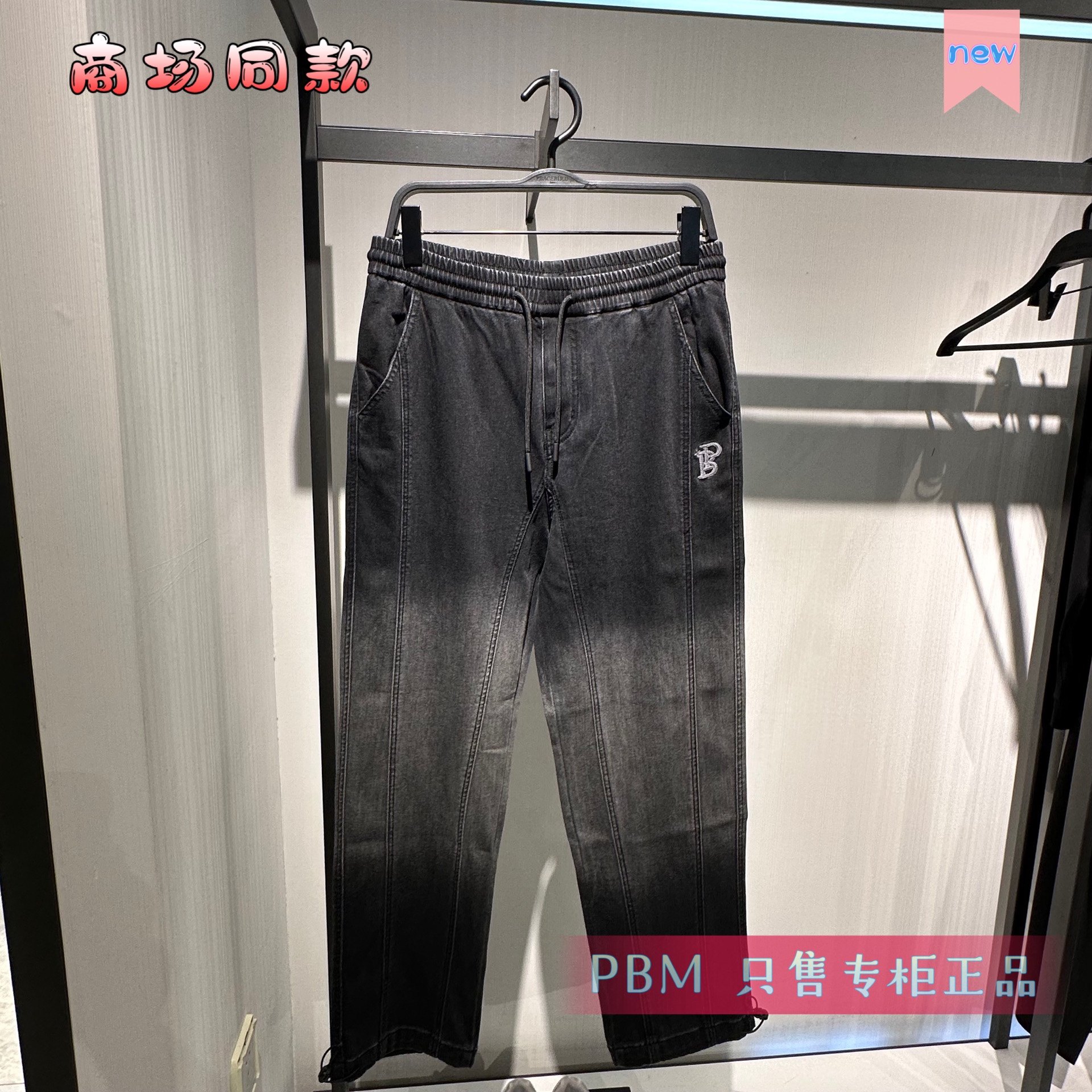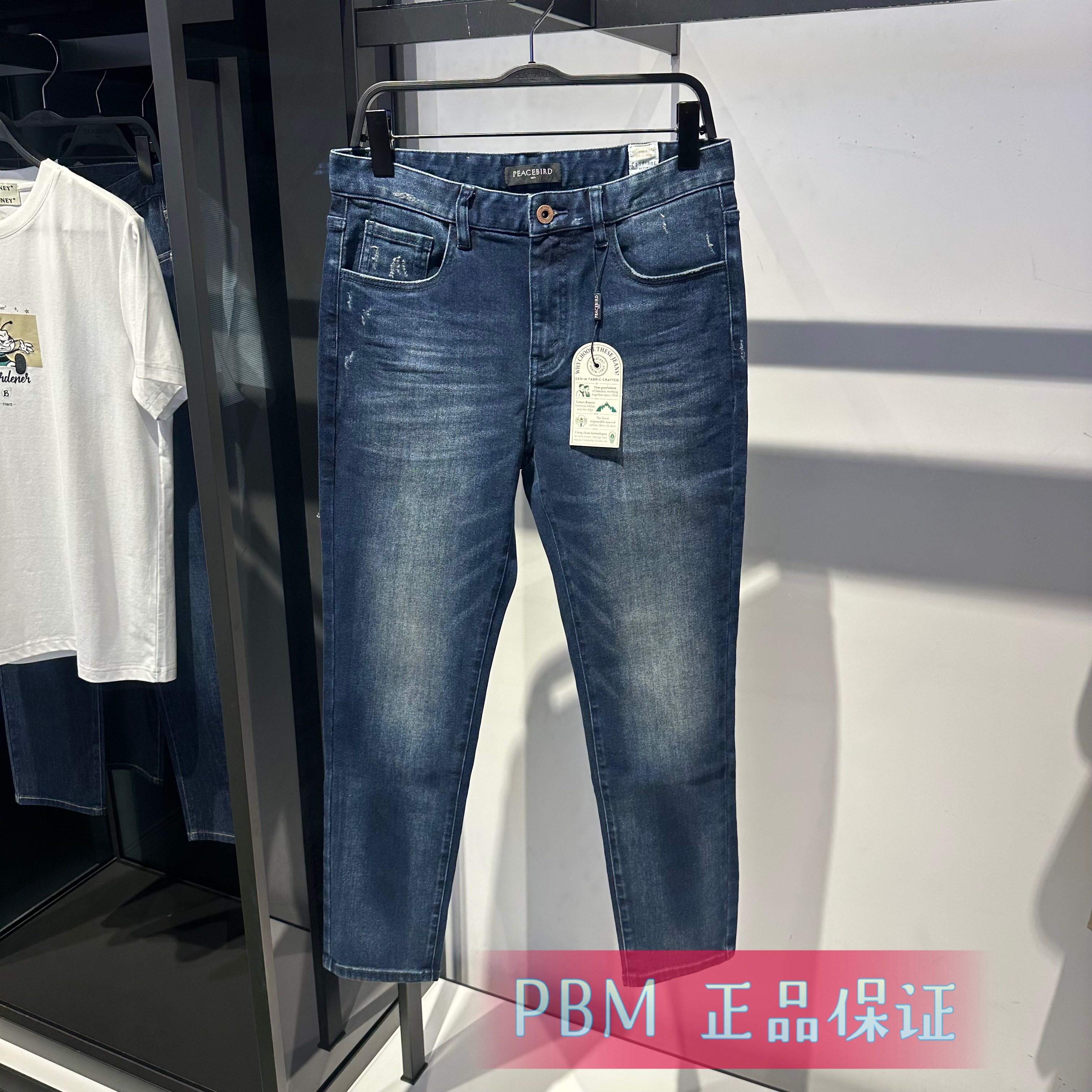 B2HAB4A02 太平鸟男装深蓝色水洗进口面料弹力修身1号长裤牛仔裤