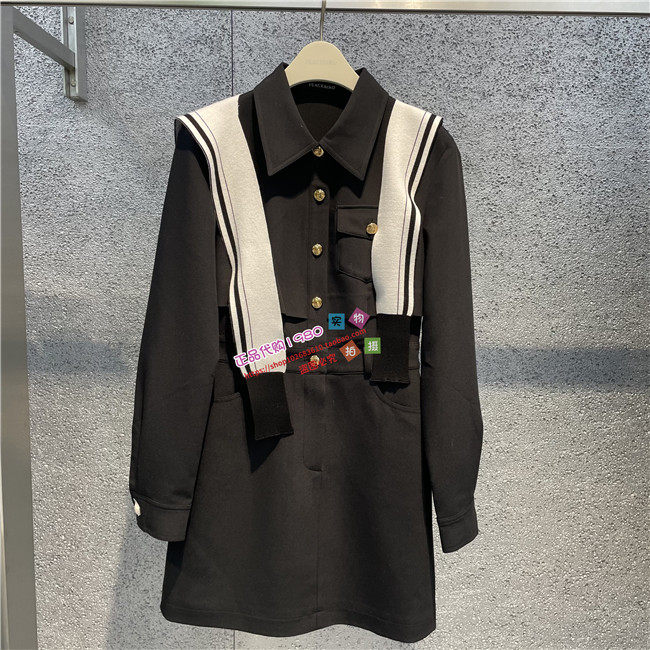 A1FAE1351太平鸟女装2024春专柜正品暗条纹西装连衣裙