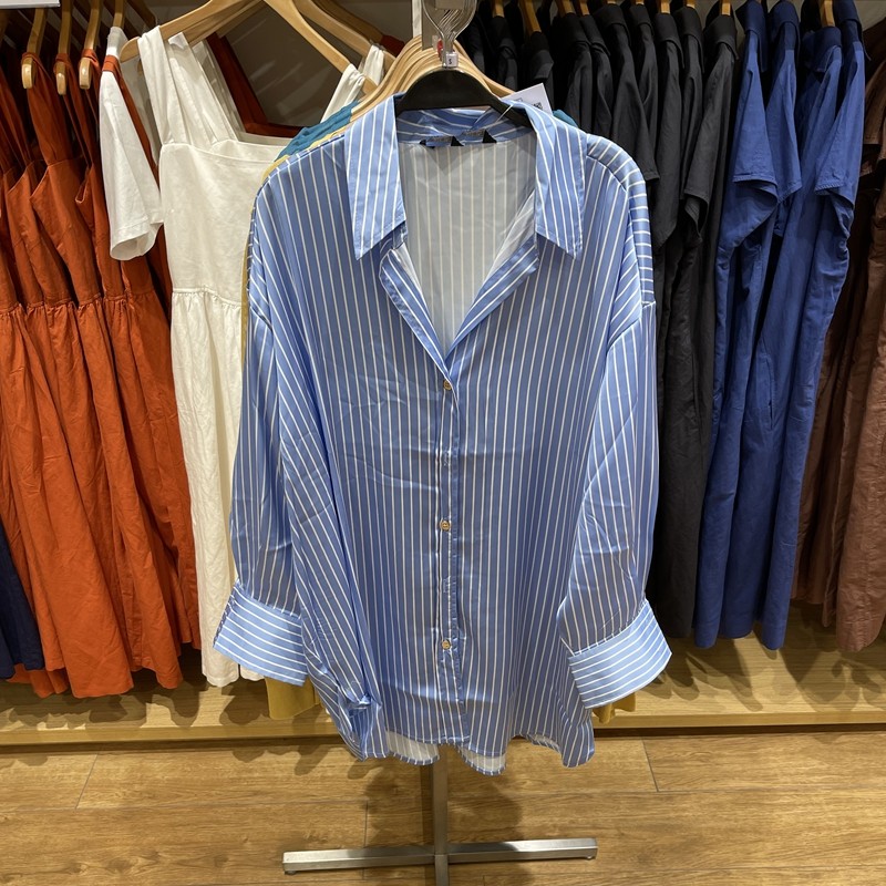 ZAR女装春季新款丝缎质感衬衫条纹宽松上衣7969260查罗7969260044