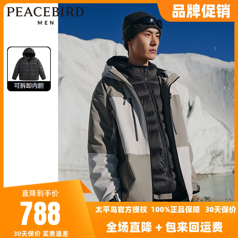 【可拆卸内胆】太平鸟男装 2023年冬季新款鹅绒三合一连帽羽绒服