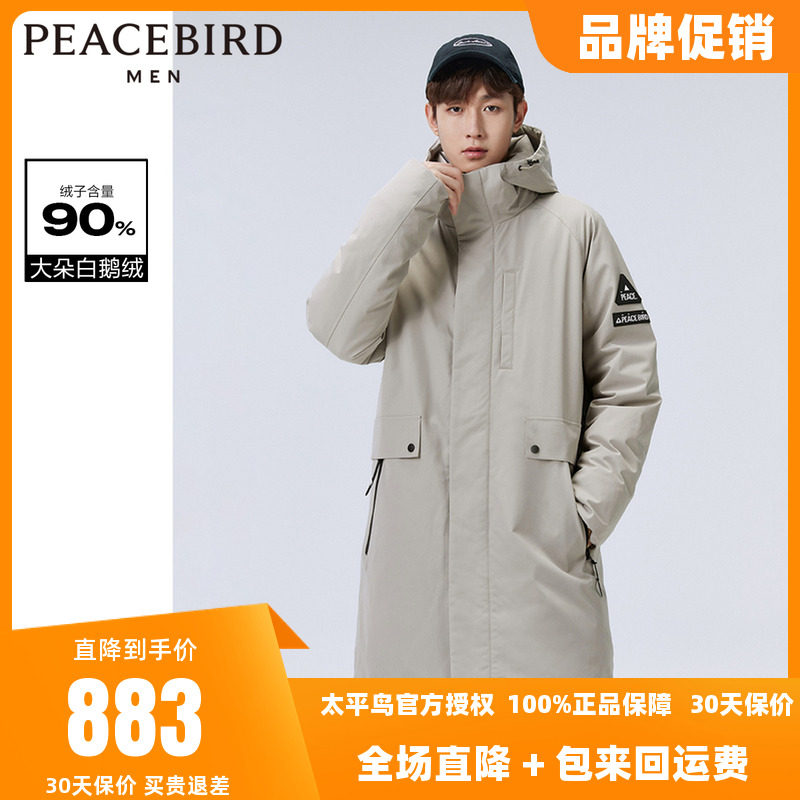 太平鸟男装奥莱 鹅绒羽绒服时尚连帽可拆卸毛领中长款外套