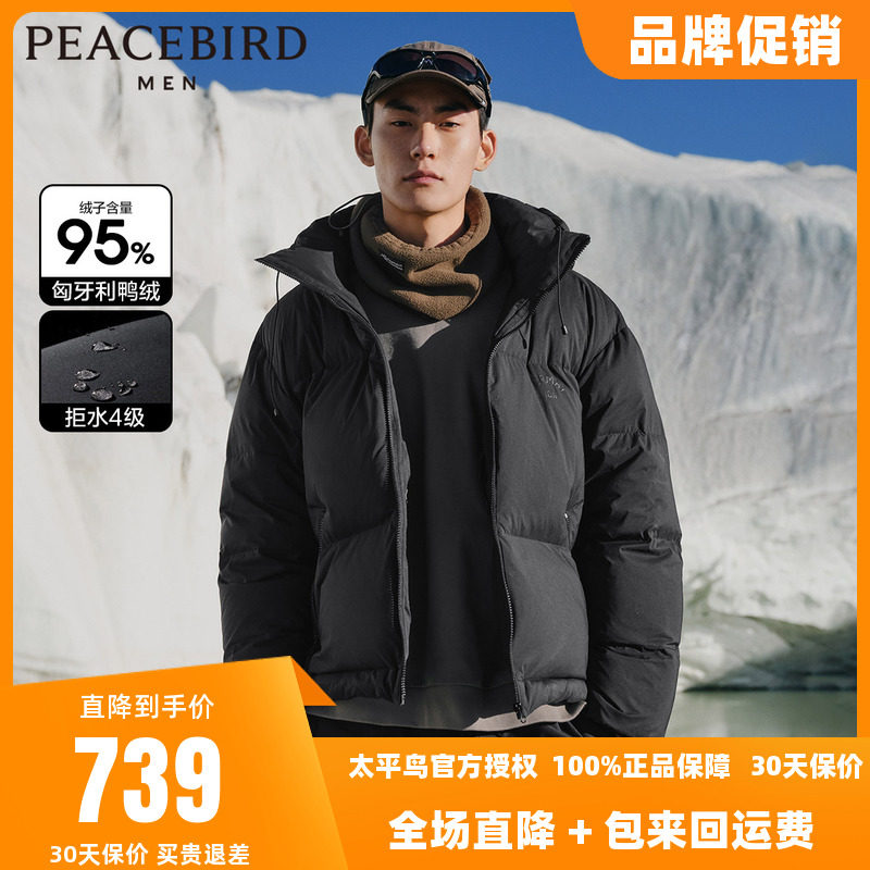 【可拆卸连帽】太平鸟男装 面包服2023年冬季新款美式羽绒服短款