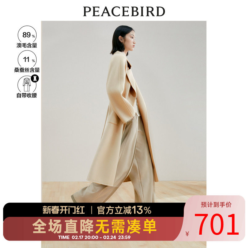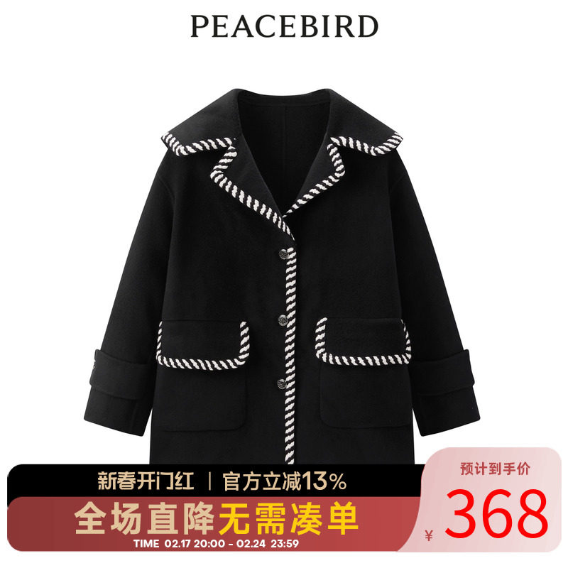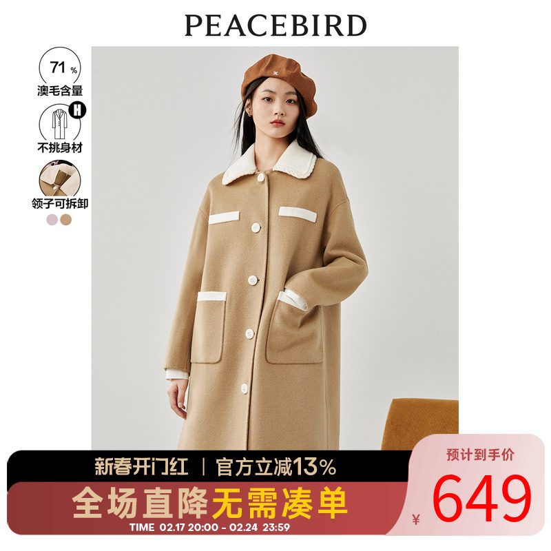 太平鸟女装2023年时尚冬季新款大翻领双面呢大衣外套A5AAC4C36