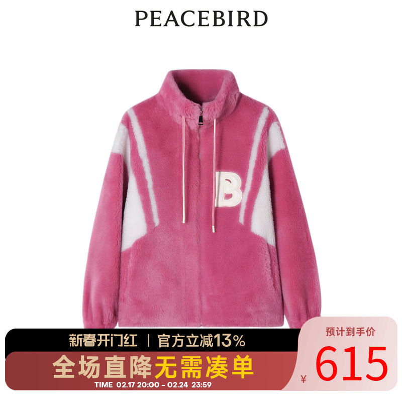 太平鸟女装时尚2023年冬季新款撞色羊毛夹克外套A5ADC4C15