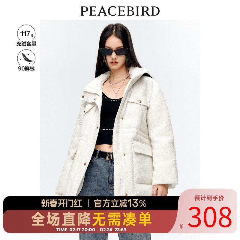 《断码清仓》太平鸟2023新款白鸭绒女款羽绒服保暖潮流百搭外套