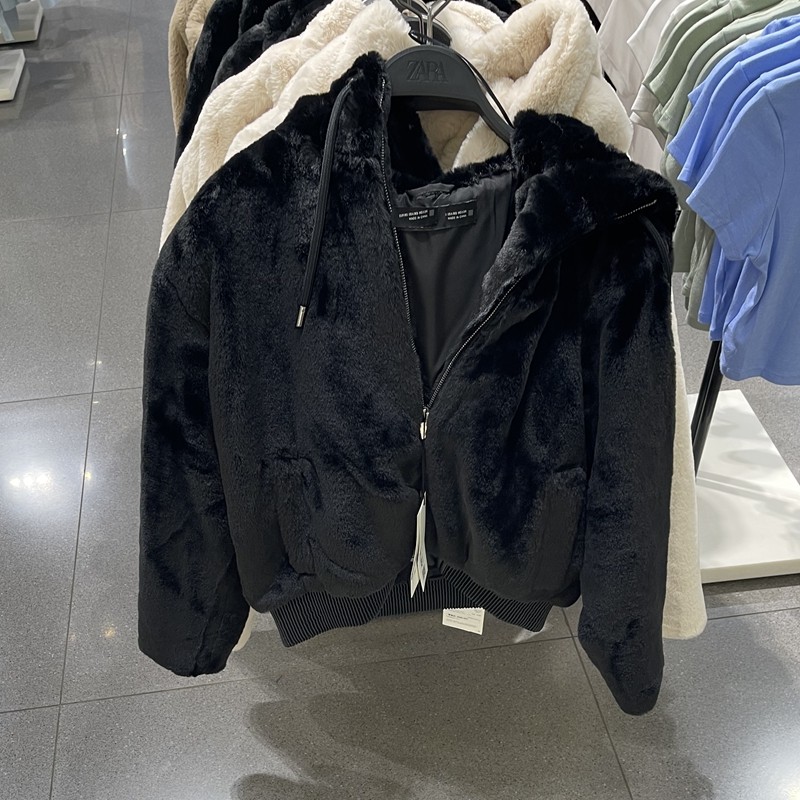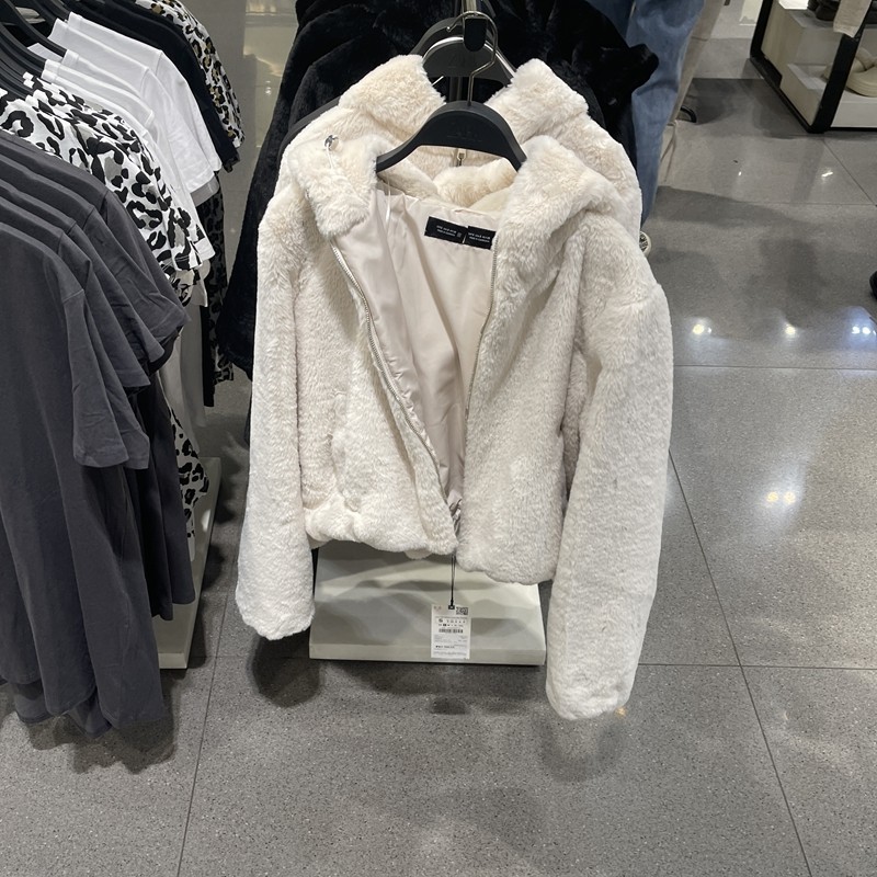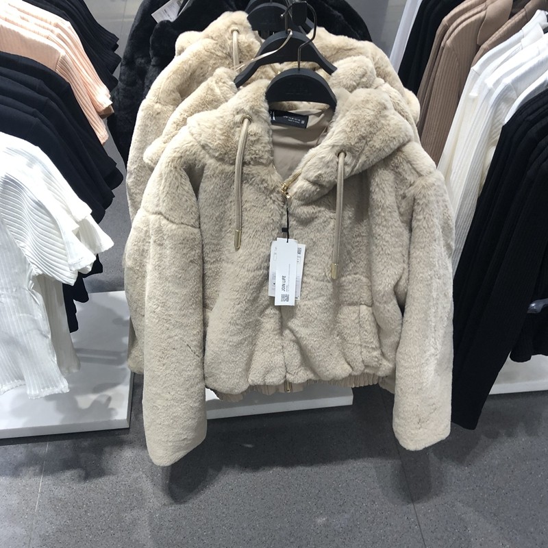ZAR女装冬装新款人造皮草短外套连帽夹克6318234查罗06318234711