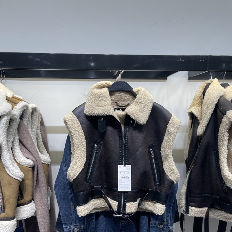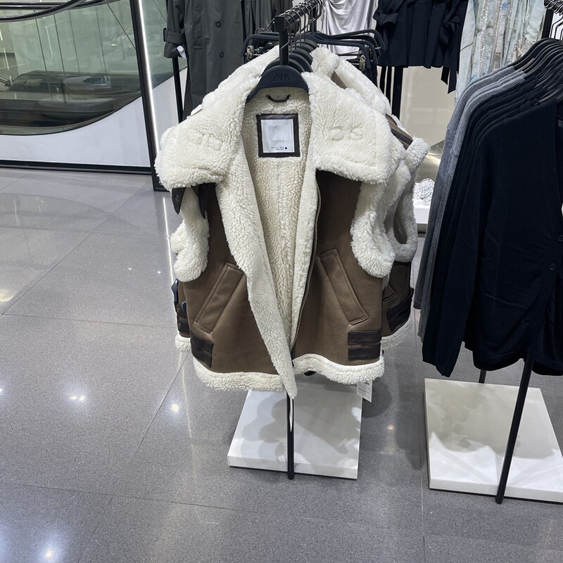 ZAR新款机车服女装马夹短背心皮毛一体外套8073238查罗8073238716