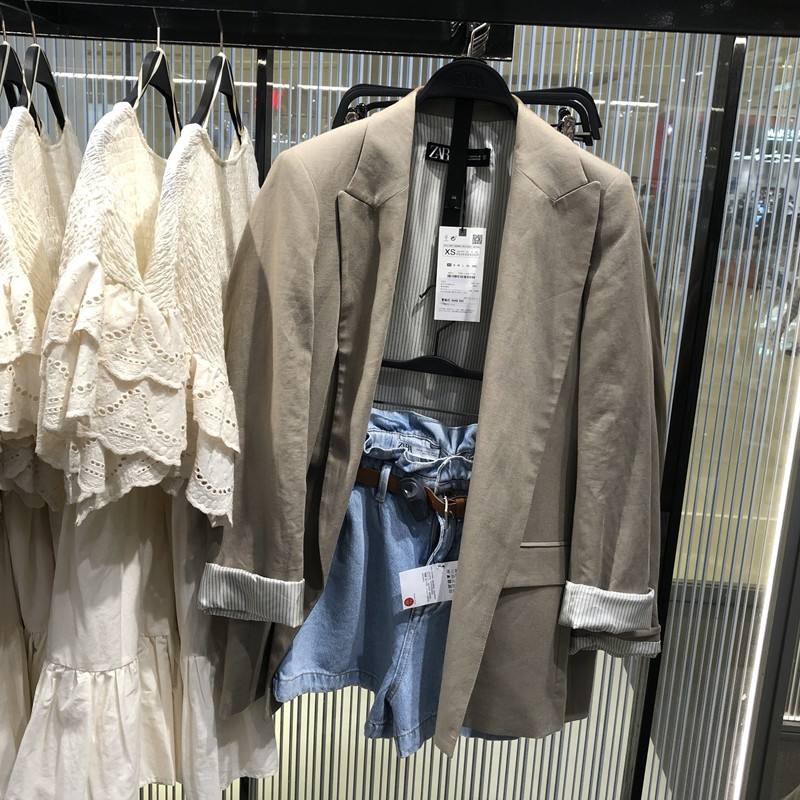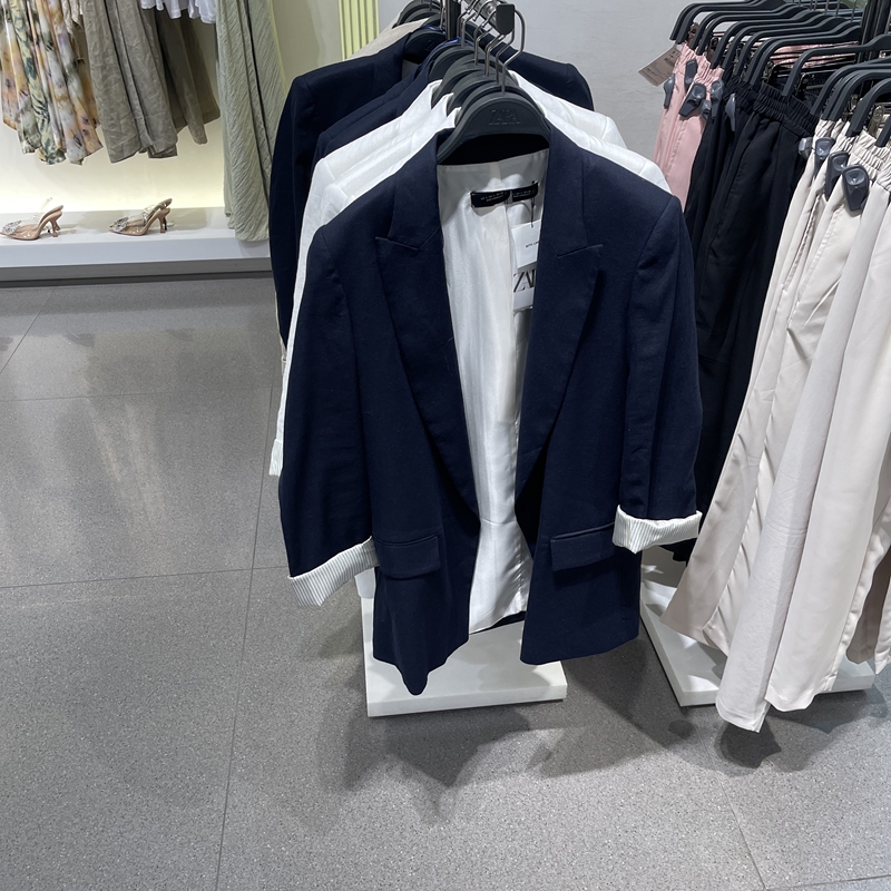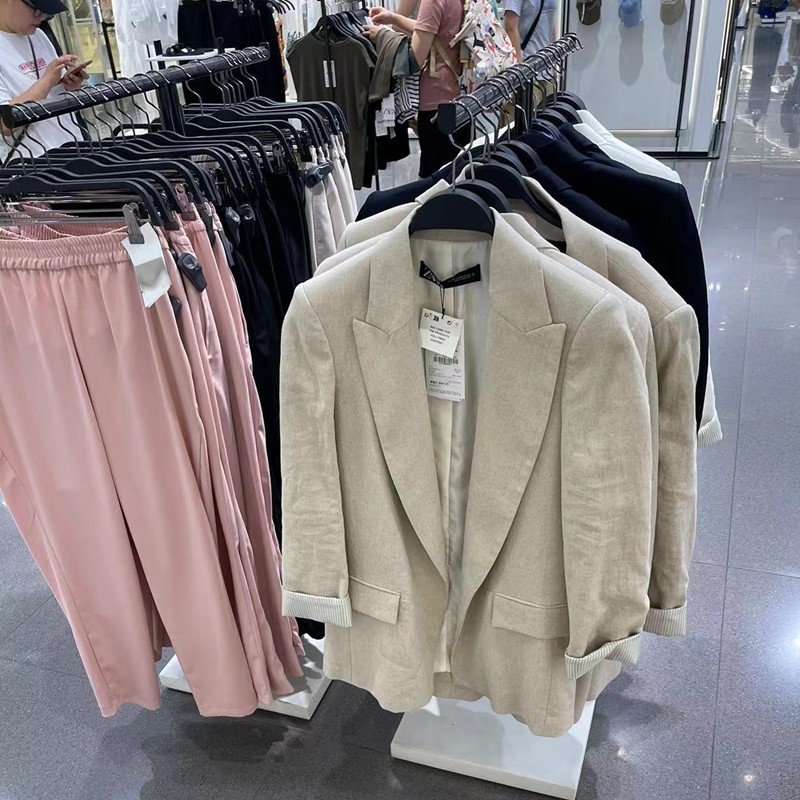 ZAR女装2023新款亚麻西装外套海蓝色小西服7726392查罗7726392401