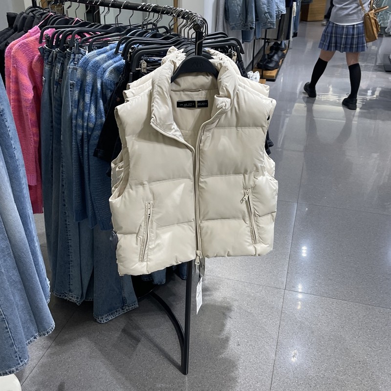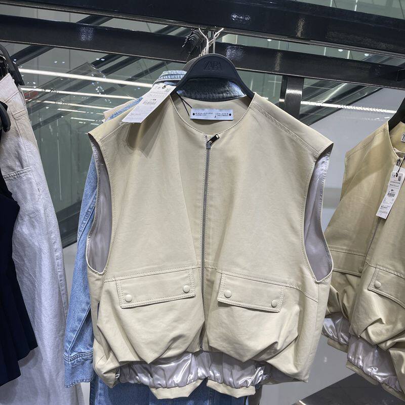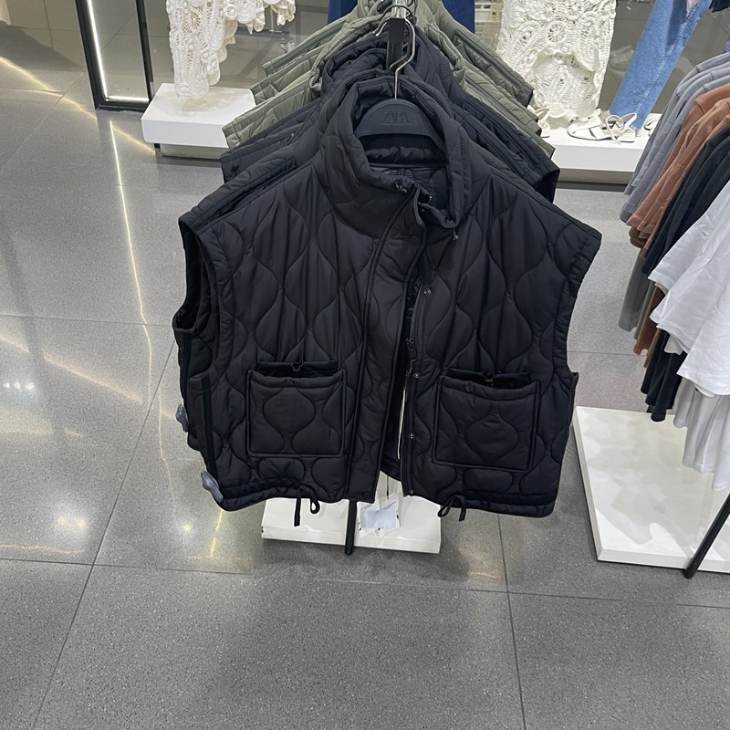 ZAR女装秋2023新款褶皱下摆棉背心马夹外套7864386查罗7864386707
