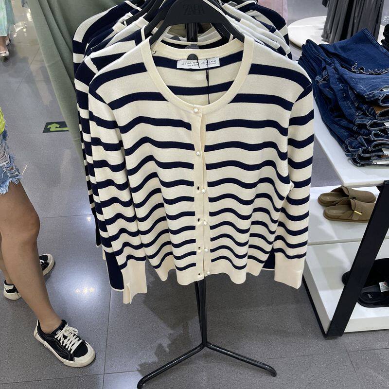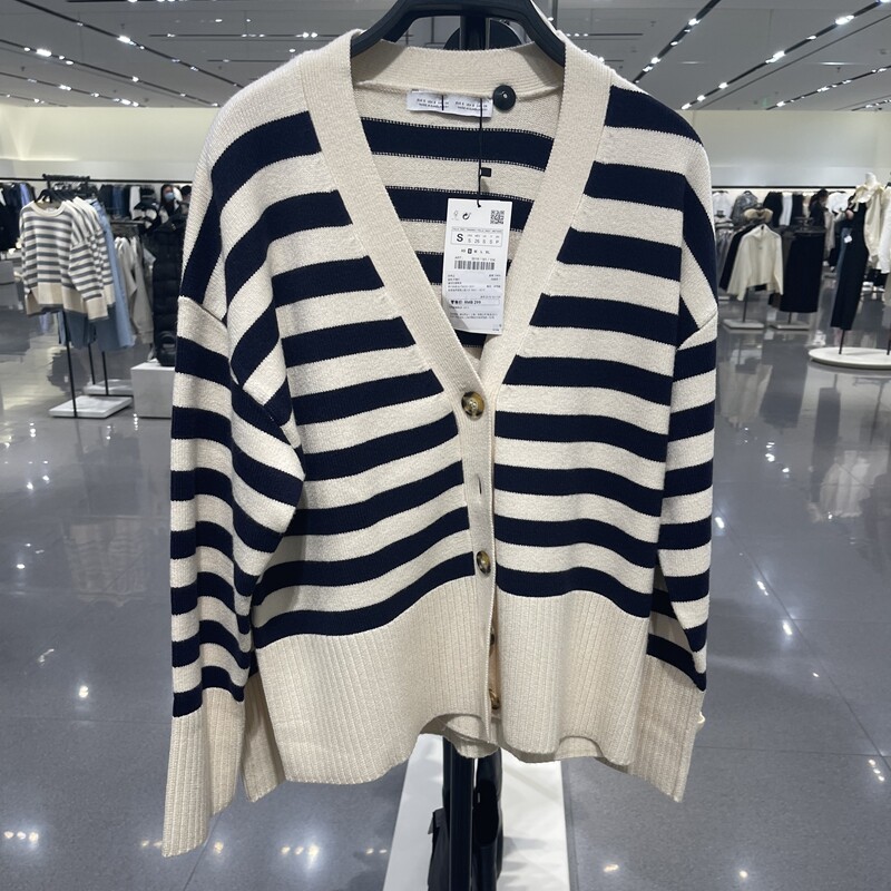 ZAR新款2023春装条纹长袖针织衫开衫外套女3519161查罗3519161104