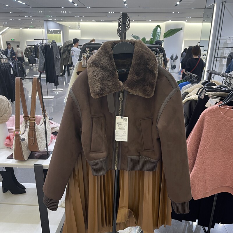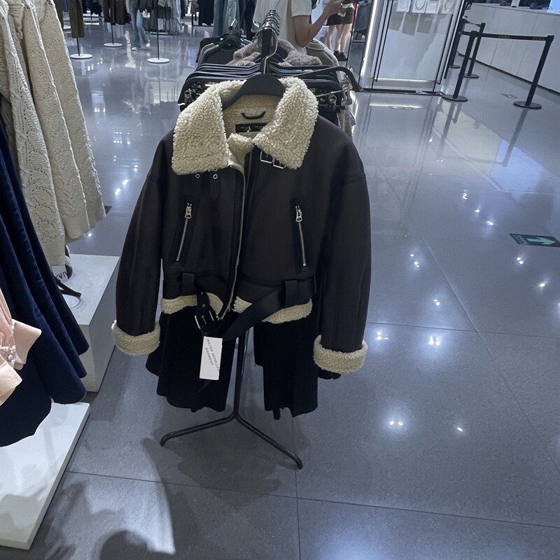 ZAR女装冬新款皮毛一体外套仿皮草夹克皮衣8073235查罗8073235716
