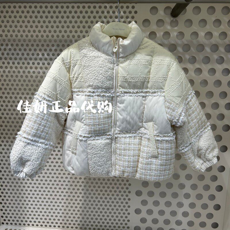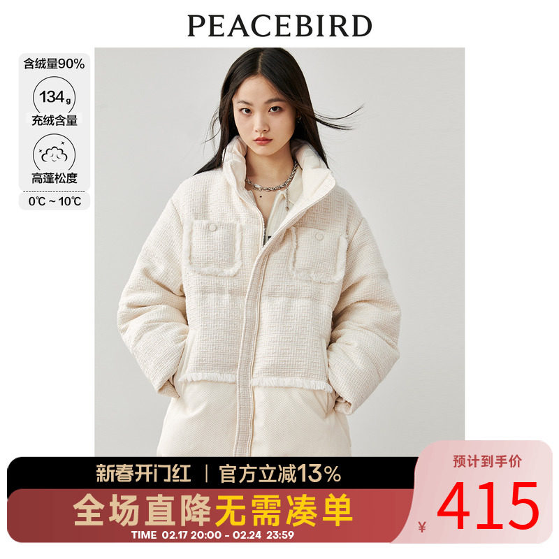 太平鸟女装小香风拼接羽绒服冬季新款白色短款羽绒外套A8ACC4310