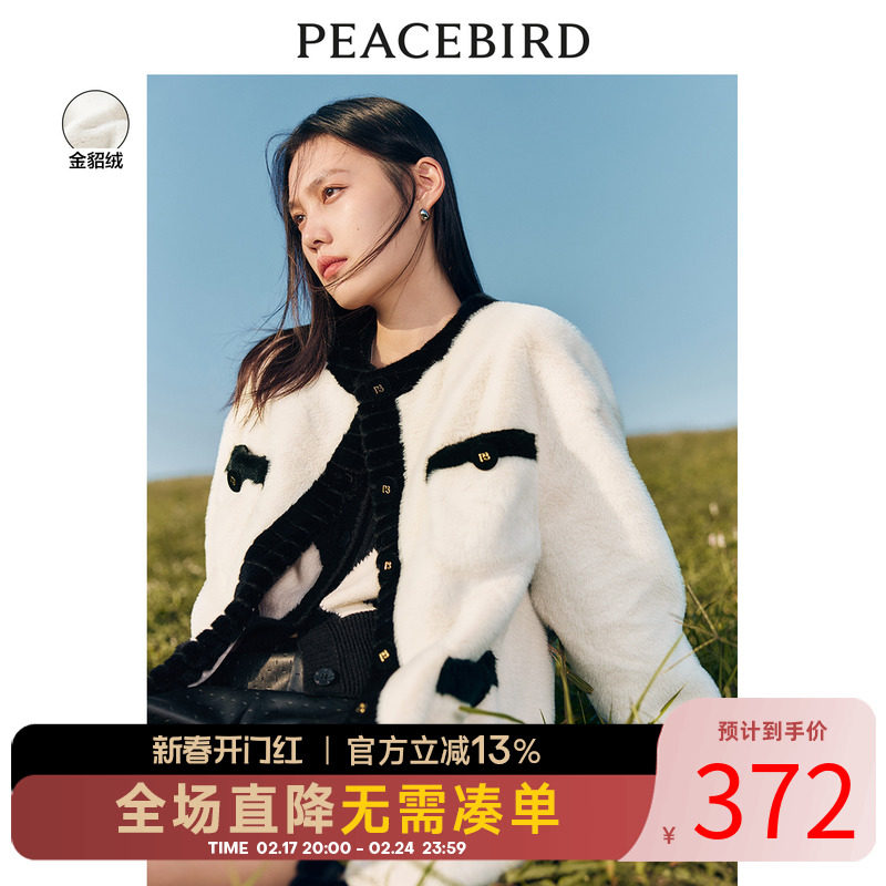 太平鸟仿水貂小香风外套女秋冬新款加厚外套女气质高级A7BBC4590