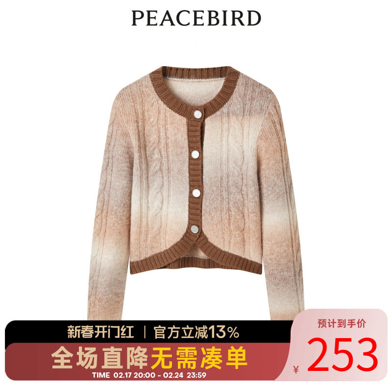 太平鸟女装女士时尚2022年冬季新款渐变晕染开衫A5EDC4G31