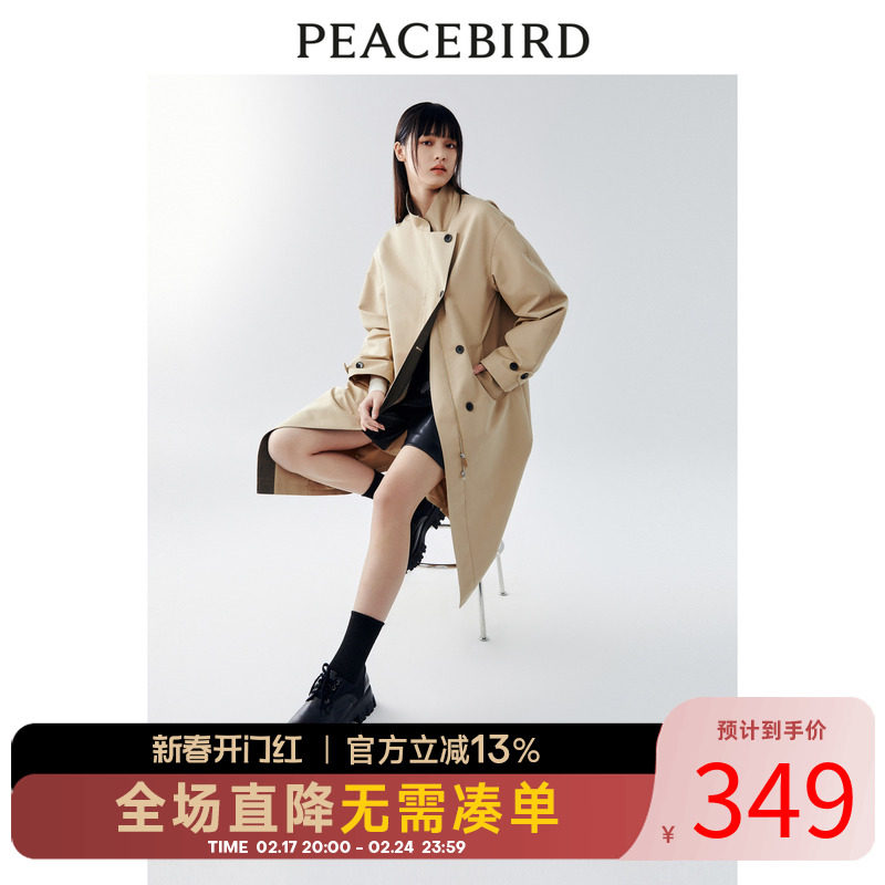 太平鸟女装拼接立领风衣外套23年秋宽松阔版大衣外套女A7BED3301