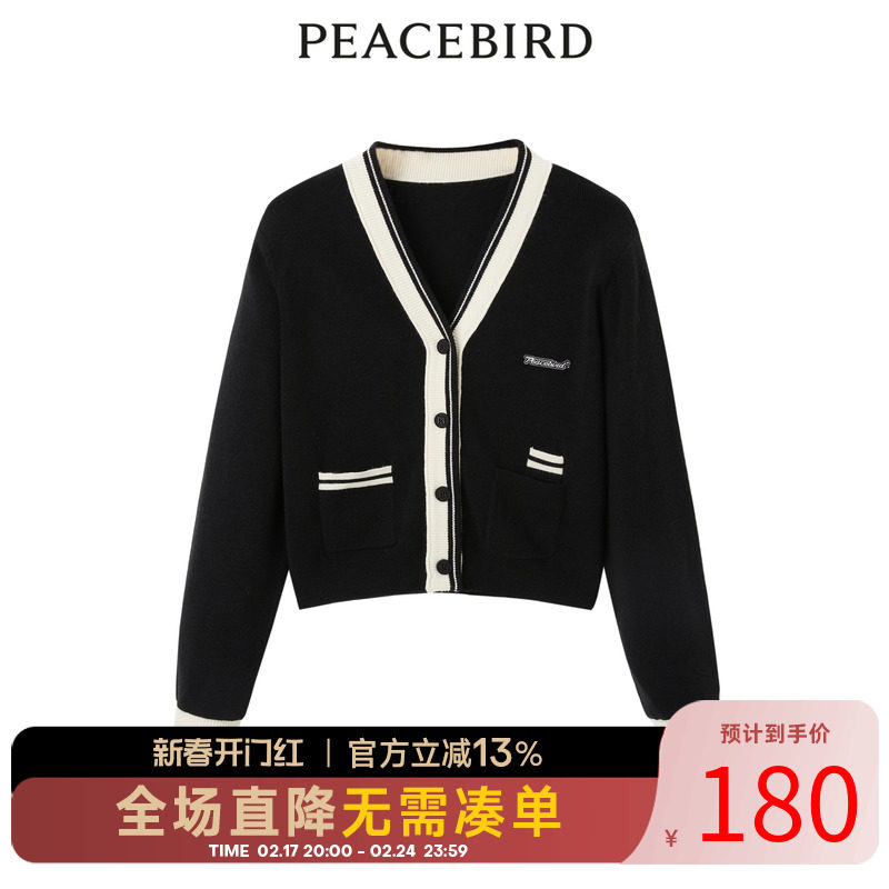 A1EDE1225太平鸟女装2024春专柜正品两件套撞边开衫A1EDE122583