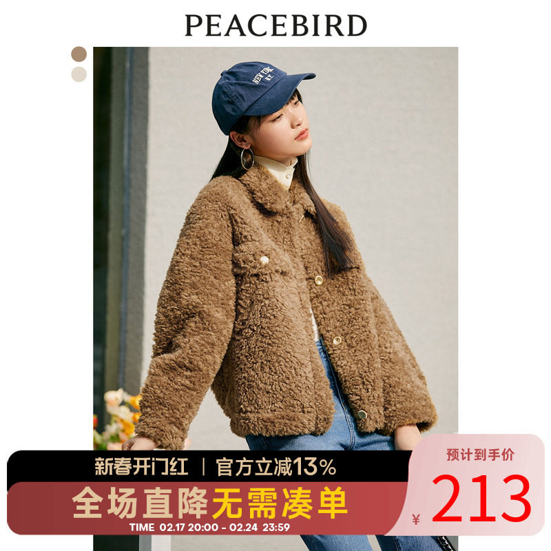 太平鸟仿羊羔毛外套女秋冬新款加厚毛绒外套女摇粒绒A7BBC411101