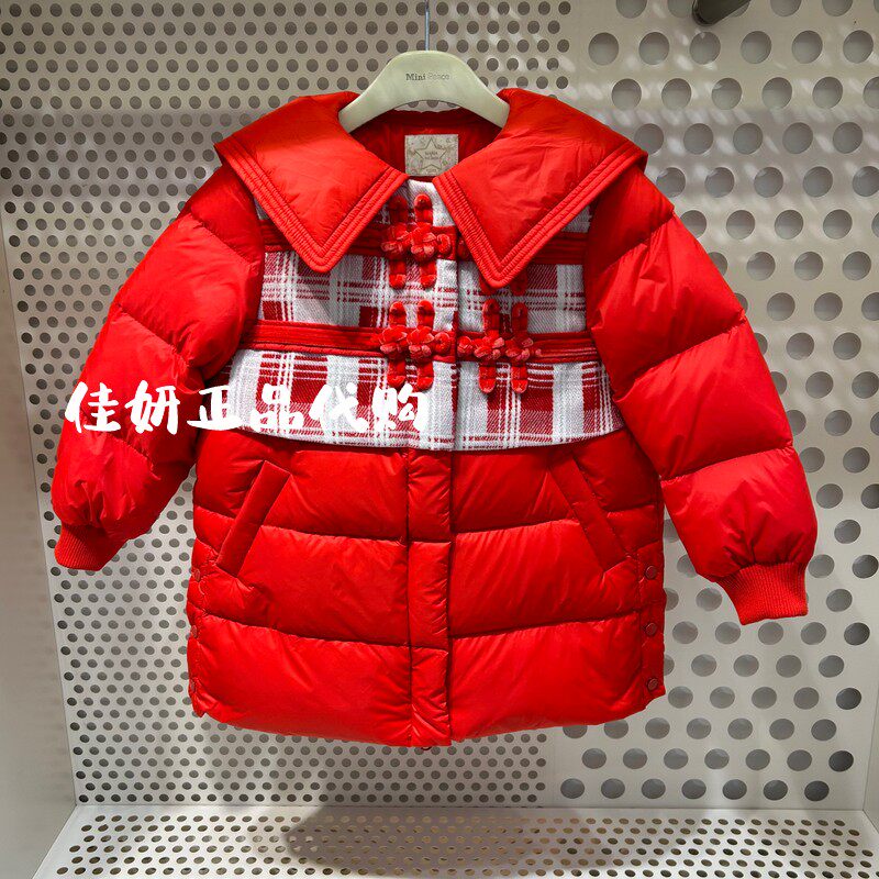 太平鸟童装mini peace23冬女童中长款新年服羽绒服外套F2ACD4617
