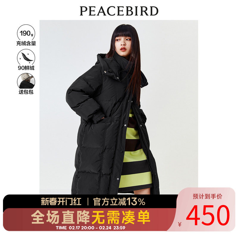 太平鸟女装中长款面包服冬季新款宽松连帽羽绒服外套AWACC463101