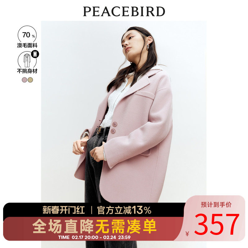 太平鸟毛呢外套女大衣秋冬新款西装式外套女冬双面呢A7AAC410801