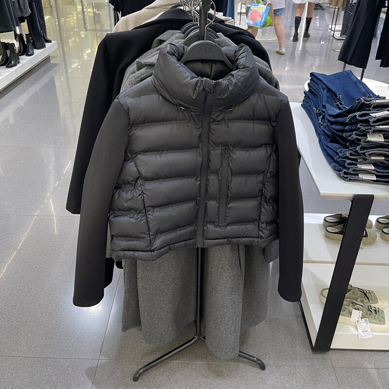 ZAR女装秋冬装外套新款拼接袖棉衣显瘦偏短款羽绒棉服查罗3427809