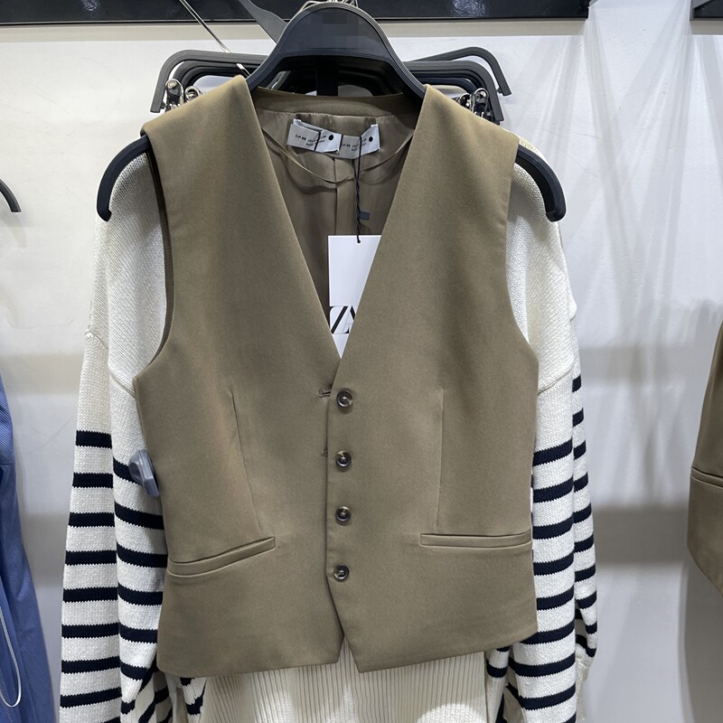 ZAR正品女装早秋新款V领西装背心外套马甲2158778查罗2158778800