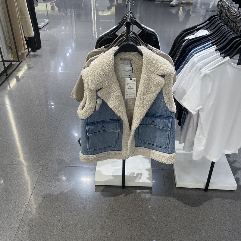 ZAR女装新款皮毛一体马夹外套牛仔拼接棉衣3548251查罗3548251405