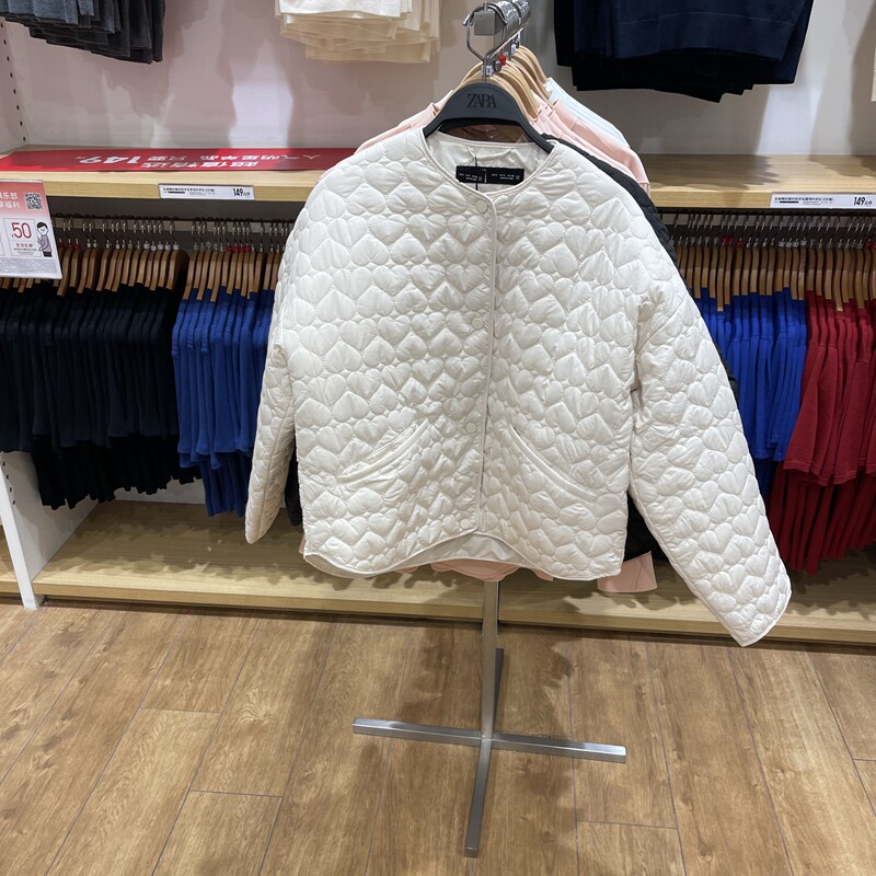 ZAR女装薄款棉衣外套心形图案羽绒棉服夹克3046830查罗3046830712