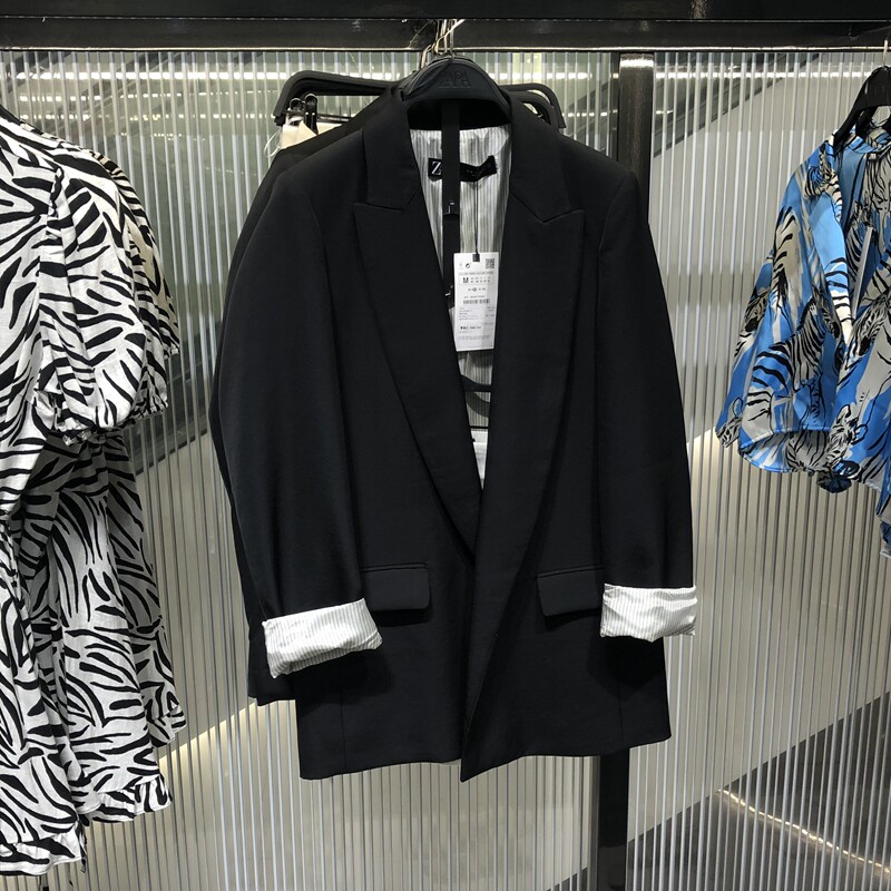 ZAR女装新款黑色可卷袖西装外套开襟小西服2189666查罗2189666800