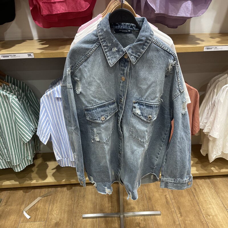 ZAR女装2023新款做旧水洗效果牛仔衬衫外套6045207查罗6045207407