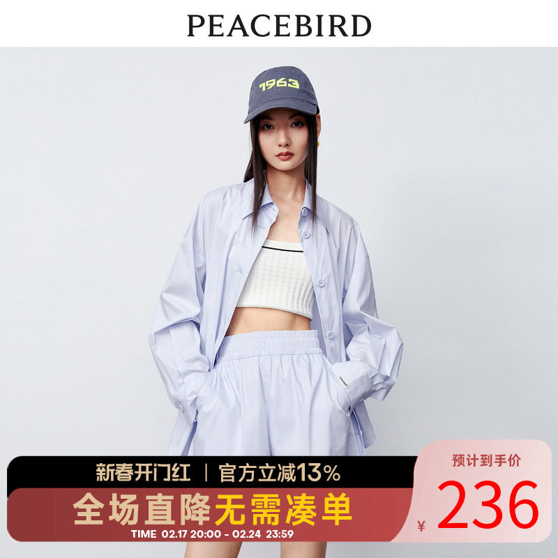 太平鸟女装雾霾蓝宽松衬衫长袖夏装女衬衣外套法式时尚A7CAD2180