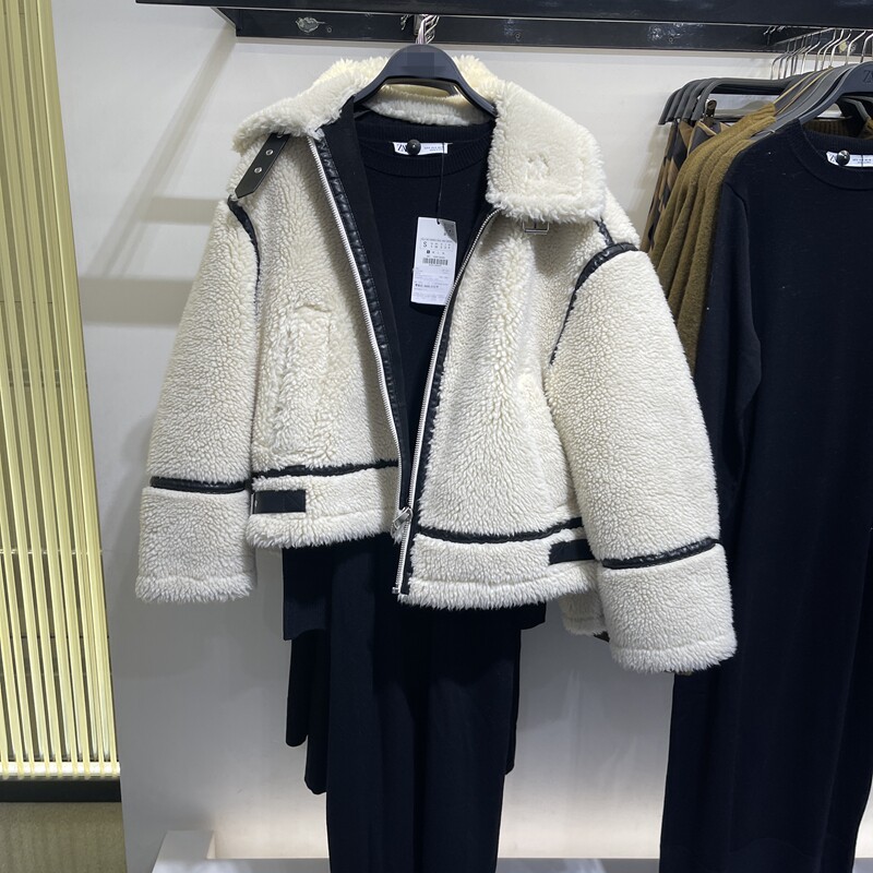 ZAR女装新款人造皮草效果大衣机车夹克外套3548247查罗3548247712