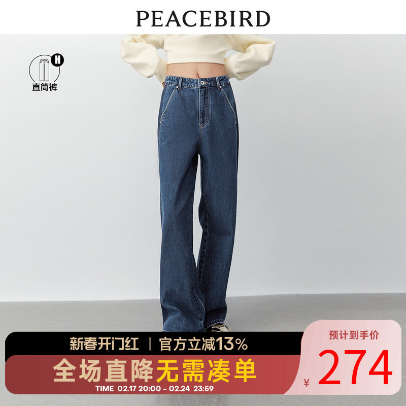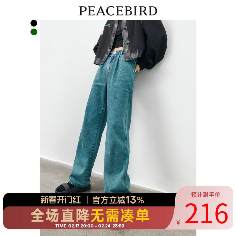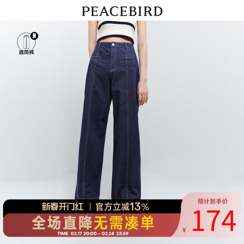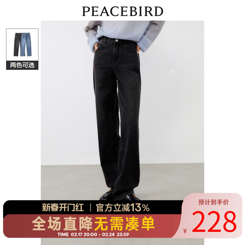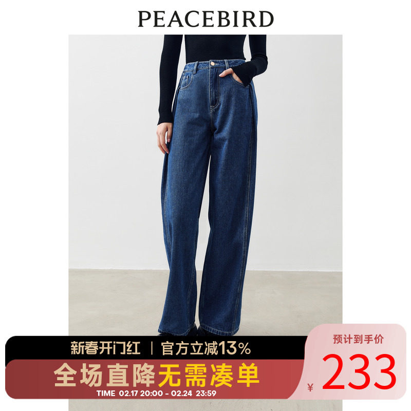 太平鸟女装高腰直筒长裤23年秋冬柔软透气阔腿牛仔裤A8HAD340501