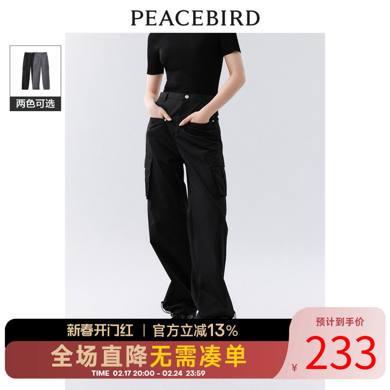 太平鸟女装高腰机能工装裤23年夏宽松显瘦束脚直筒裤A7GBD3A2401