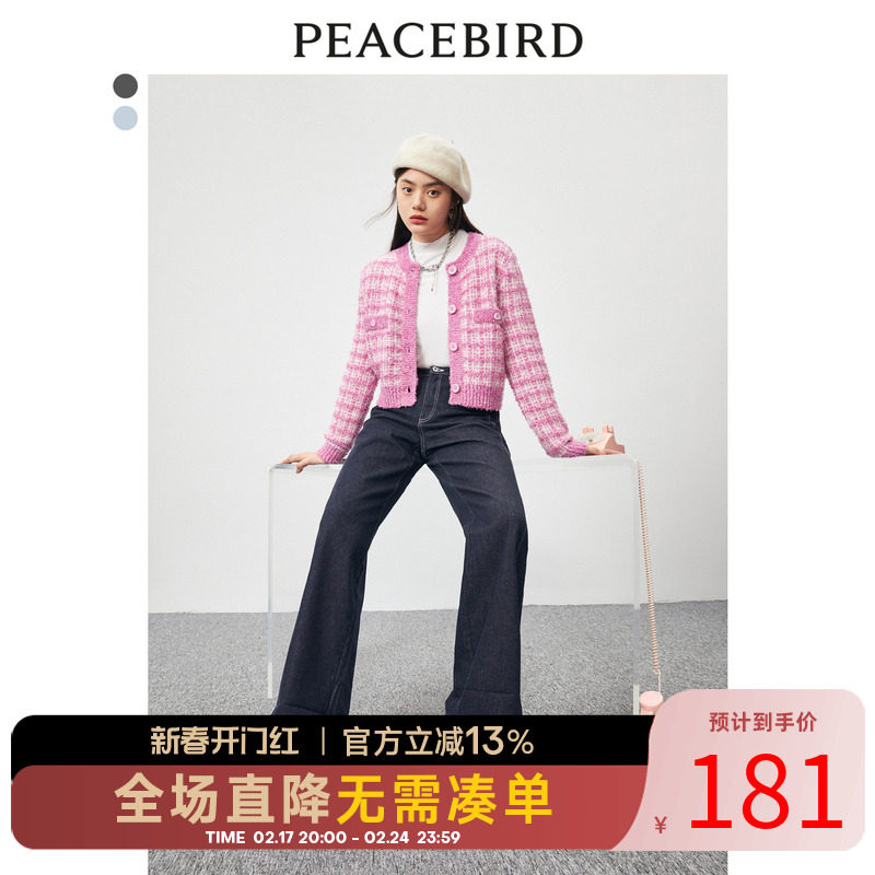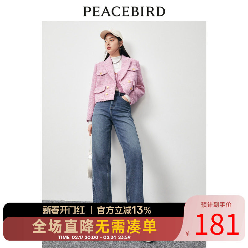 太平鸟女装高腰直筒牛仔裤23年秋冬柔软绒毛阔腿牛仔裤A8HAD3406