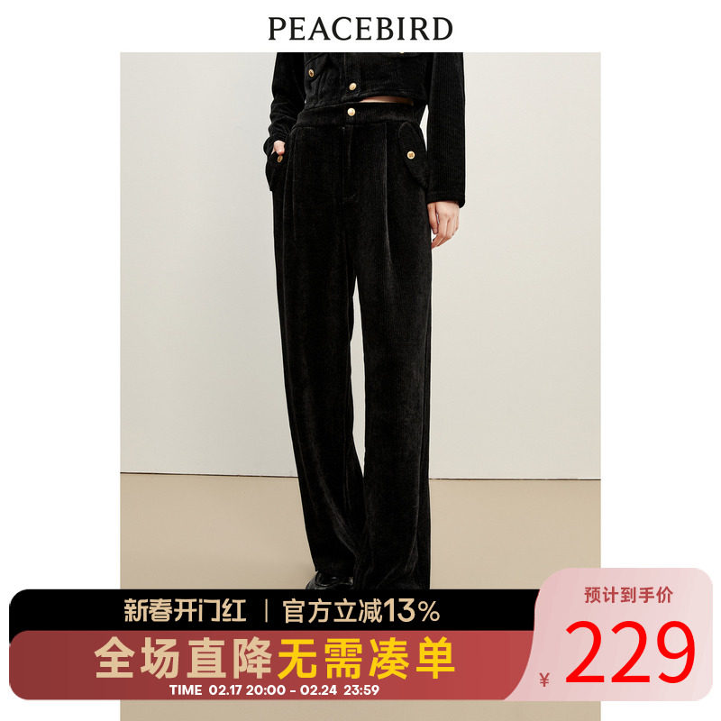 太平鸟女装2023年冬季新款斯文直筒休闲长裤子A1GBC4693