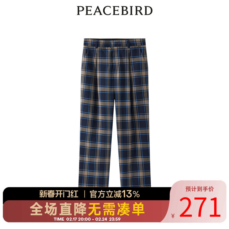 【商场同款】太平鸟女装女装2023年春季格纹直筒长裤A1GBD1367