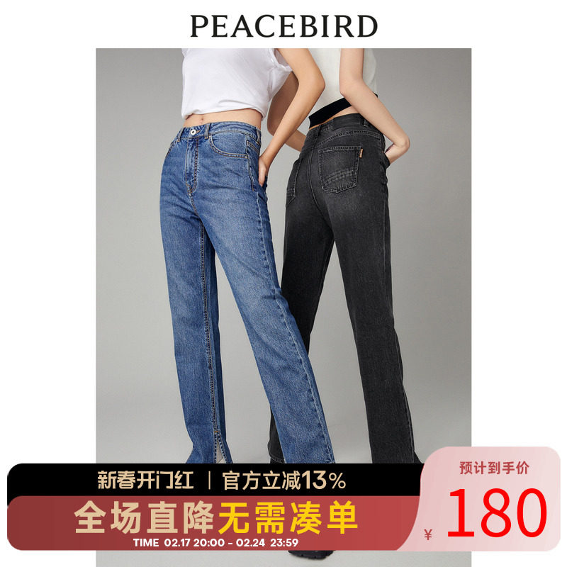 太平鸟女装2023年新款修身显瘦开叉直筒牛仔裤A1HAC3401