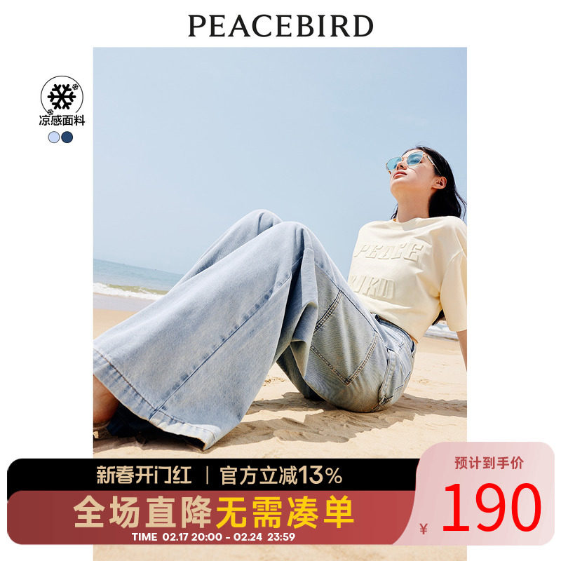 太平鸟女装高腰阔腿牛仔裤女2023年夏季凉感直筒裤A7HAD2A0301