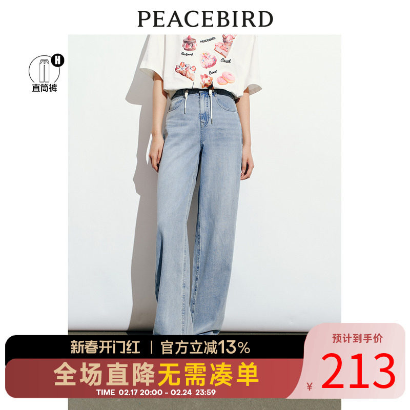 太平鸟女装直筒牛仔裤女夏季新款高腰宽松抽绳老爹裤AWHAC312201