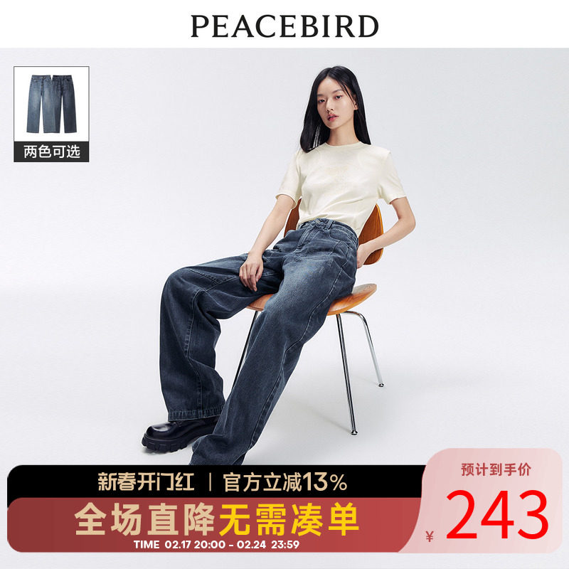 太平鸟女装高腰直筒牛仔裤阔腿裤23年春季宽松显瘦长裤A8HAD1324