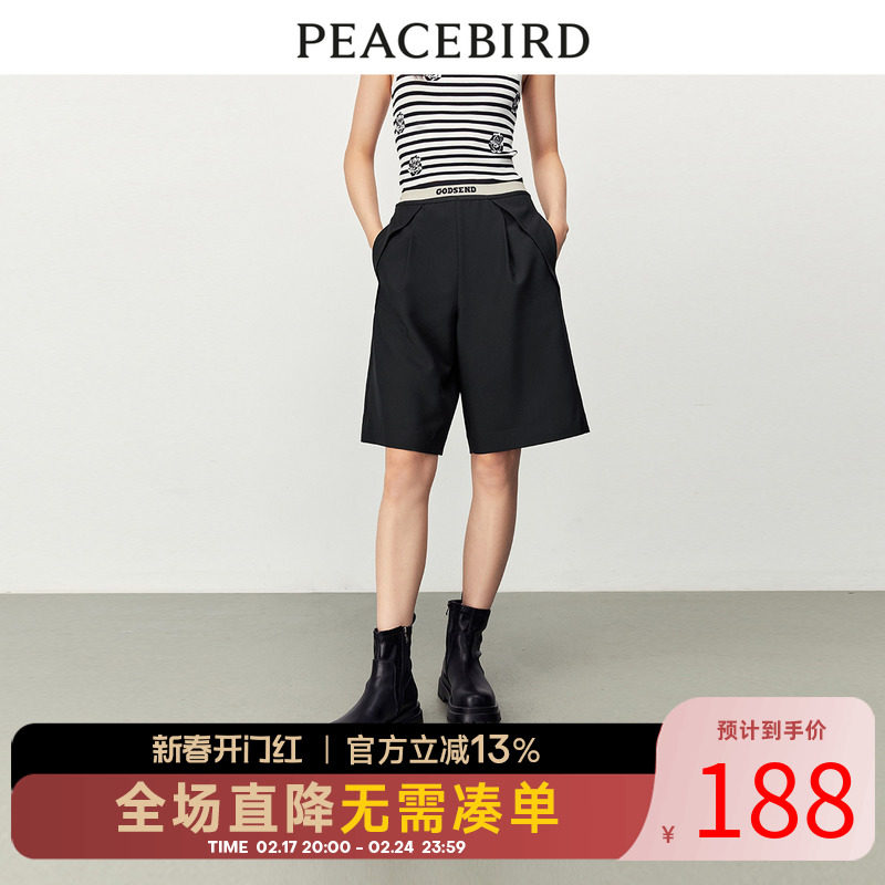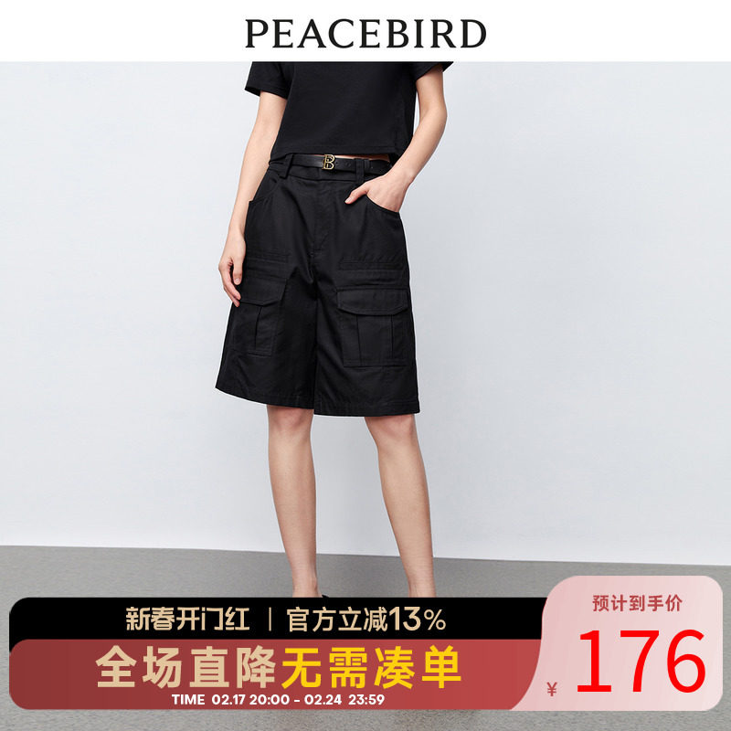 太平鸟女装高腰工装阔腿短裤女23年夏宽松显瘦直筒短裤A7GCD2101