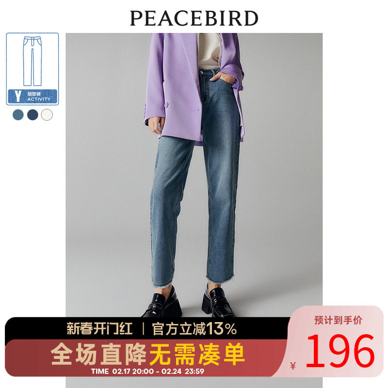 太平鸟女装直筒牛仔裤女新款中高腰修身显瘦九分裤子A7HAC325001