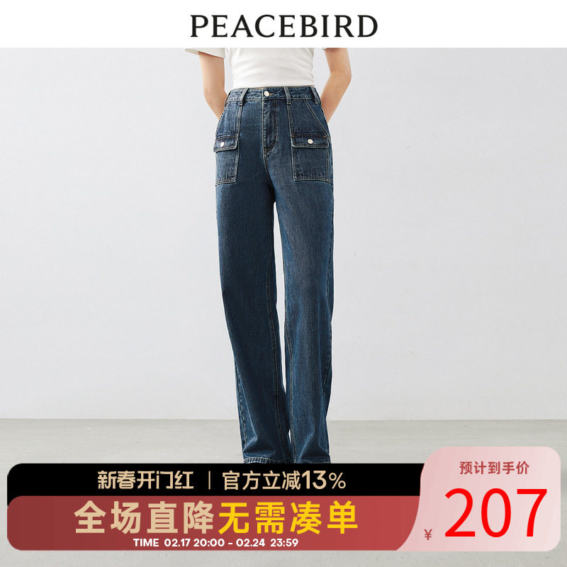 太平鸟女装高腰工装直筒牛仔裤女23年秋宽松阔腿牛仔裤A8HAD3208